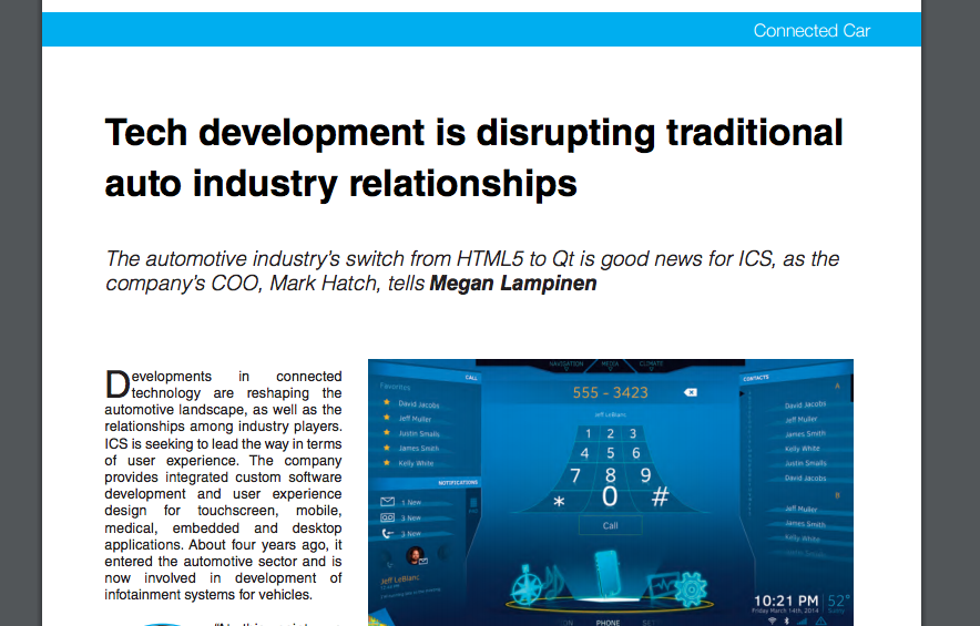 Read how tech development is disrupting traditional auto industry relationships and the role ICS is playing in this Automotive Megatrends article with Mark Hatch, COO, ICS.