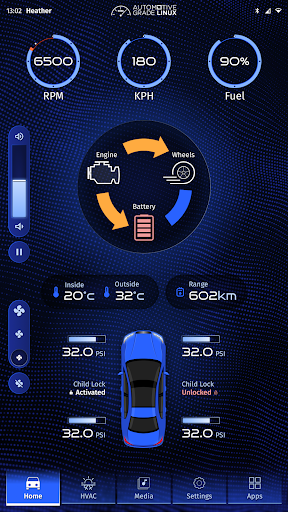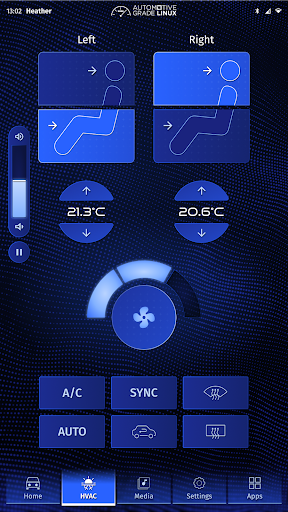 To stand apart from the 300+ vehicle tech exhibitors at CES, AGL requested a fresh, modern look and feel, and intuitive navigation that would present well on the specified 7-inch portrait-mode, 8 GB Raspberry Pi touchscreen hardware. In order to highlight AGL’s capabilities, ICS’ design team focused on creating a user interface (UI) with heightened visceral appeal and supporting the development team, which concentrated on building working integrations for key screens, including Home, HVAC, Media Player, Settings and Apps.