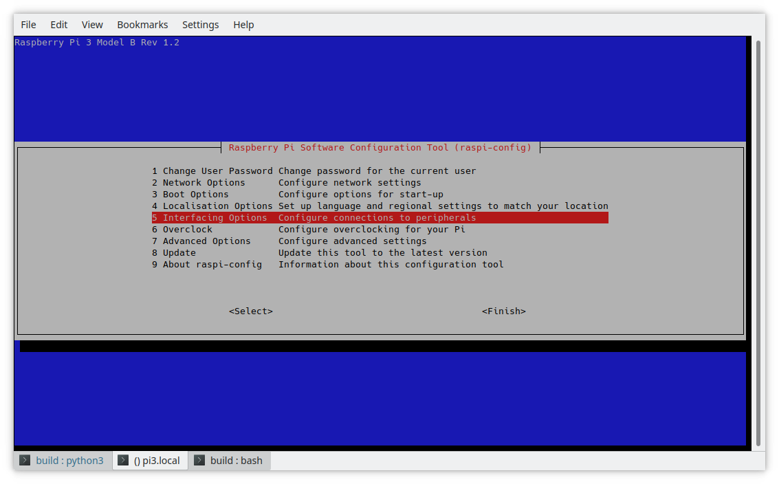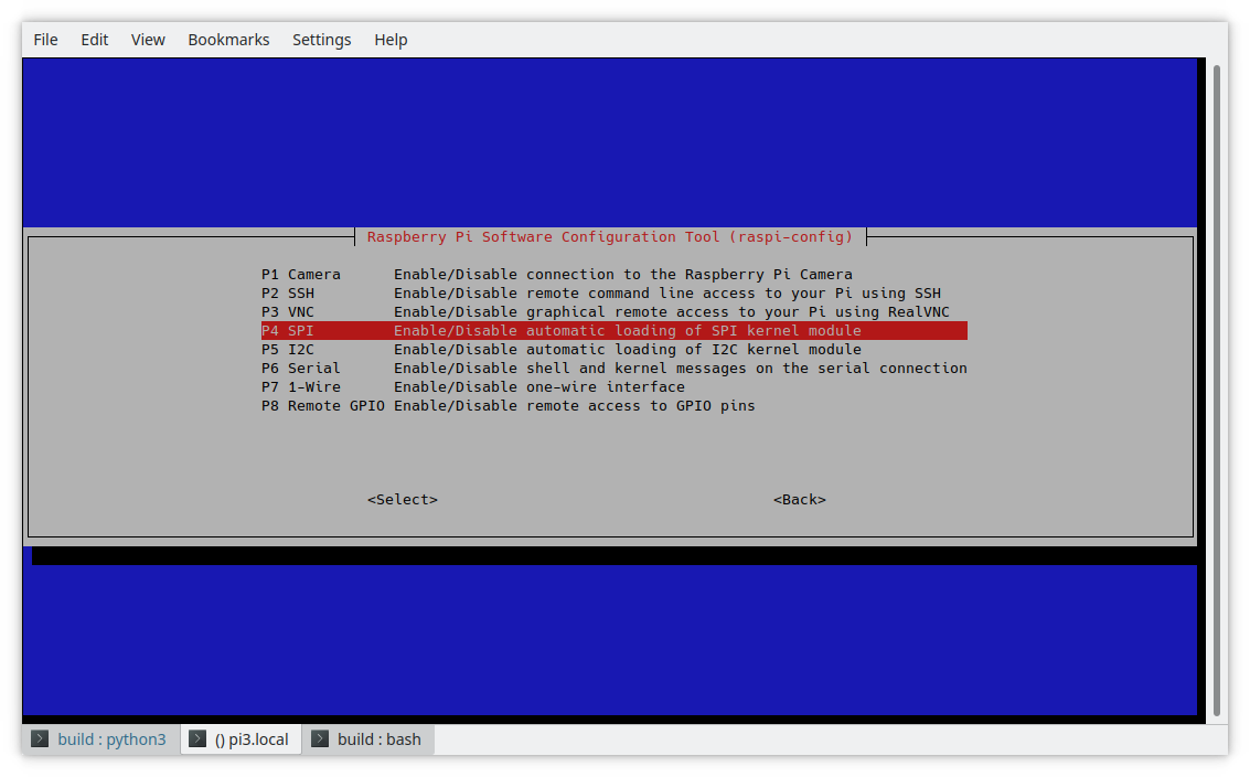 If you plan to experiment with some of the more advanced features of GPIO programming, you can enable them now as well. Run the Raspberry Pi configuration program as root by typing: