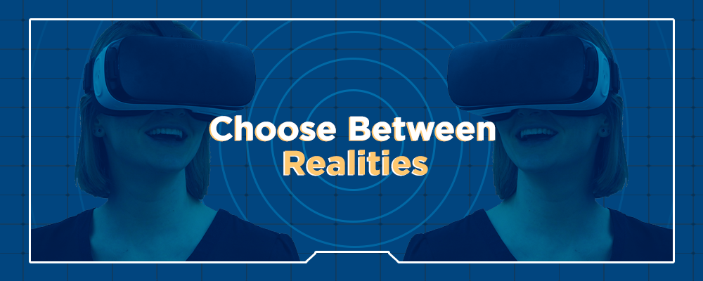 VR creates a whole new world that your user interacts with. You need to wear a headset and should wear headphones to have the complete VR experience, which puts the user into a virtual environment. VR systems that include transmission of vibrations and other sensations to the user through a game controller or other devices are known as haptic systems. (The immersive environment can create a lifelike experience that may be too intense for kids so we don’t recommend VR for companies catering to children.)