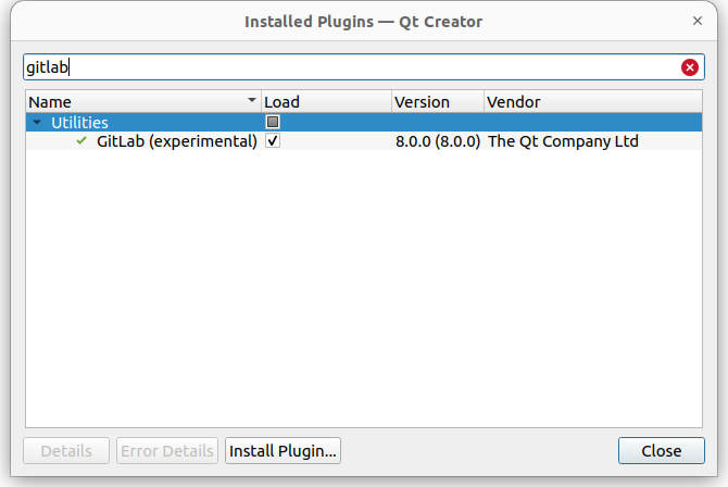 As of Qt Creator version 8.0.0 the plugin is considered experimental and not enabled by default. To enable it, select Help / About Plugins... and select the Load checkbox for the plugin Utilities / GitLab (experimental).