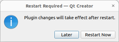 Close the dialog and it will then prompt you to restart Qt Creator: