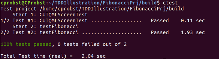 Our BusinessLogicTest runs six unit tests (the number of rows in the table) and tests the business logic’s implementation of the Fibonacci function: uint BusinessLogic::fib(uint n) noexcept.