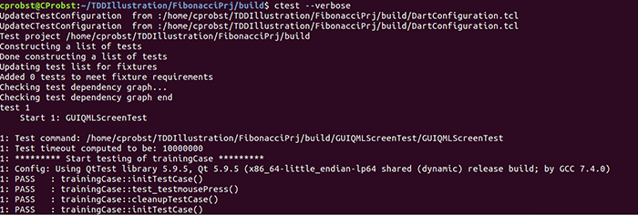 In our example, the first is illustrated with the BusinessLogicTest project, the second with the GUIQMLScreenTest project. For CTest to run these tests, the CMakeLists.txt file of both sub-projects uses the directive add_test.