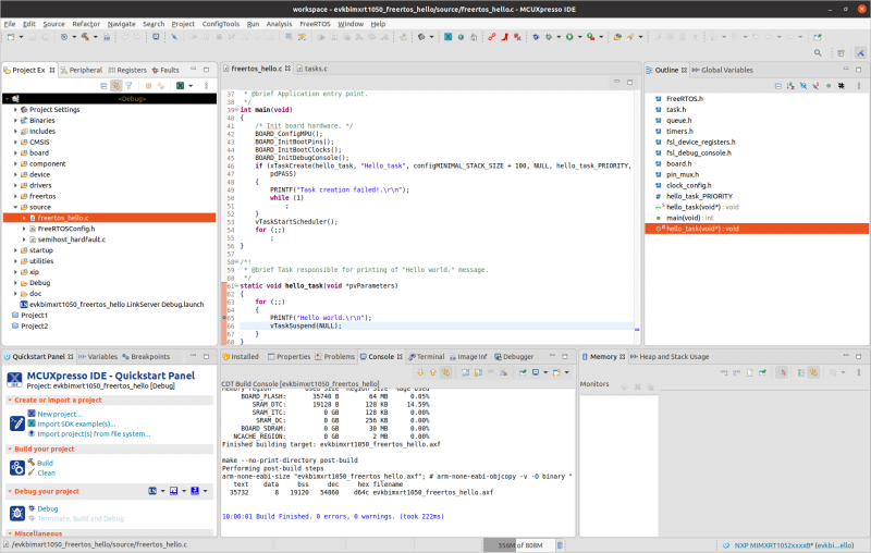 I found it quite easy to get this board up and running with the vendor supplied MXUXpresso IDE and the included FreeRTOS examples.