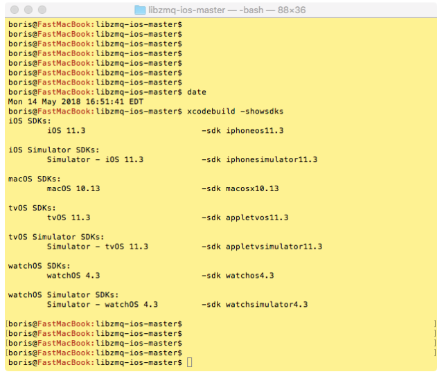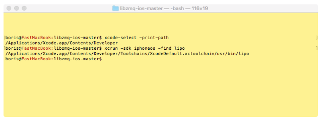 Our best resource is http://zeromq.org/build:iphone with its instructions on how to build the library for iOS. Or not. The problem is that these instructions are outdated. For instance, the script asks for iOS 5.0 and XCode 4.3.3. The current iOS version is 11.3.1 and the latest version of XCode is 9.3. Clearly the information has not been updated for a number of years. In fact, the latest release of iOS 5.x was May 7, 2012. The Apple ecosystem has evolved significantly since then, including adding new devices like Apple Watch, new programming language, and new build tools.