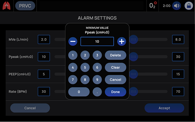To address this critical feedback, our UX team designed a vertical slider design that did not incorporate popup keypad. This more conventional design means ventilator operators are familiar and comfortable with interaction, mitigating any learning curve. Also, the lack of popup speeds use because there are no extra screens to close before exiting.