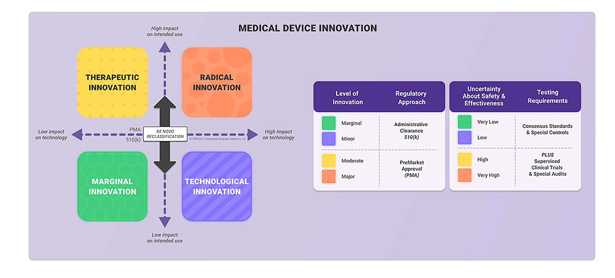 There’s also a DeNovo certification pathway dedicated to novel devices for which there is no legally marketed predicate device.