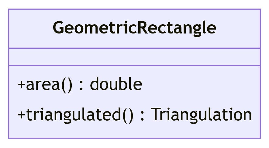 Of course, in real life things aren’t usually so simple. The problem with the example is that in comparison to real-life scenarios, they can be over-idealized. Let’s say we would need to make certain operations on a triangulated model of the rectangle. Our GeometricRectangle API could be extended like this: