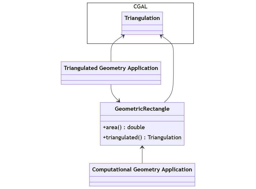 Even though dependencies are the same as in the initial example things are much more blurry. Shall we break the GeometricRectangle class again? This would most likely require a refactoring of the existing code. But what if the Computational Geometry Application would want to use the triangulated() method at some point?