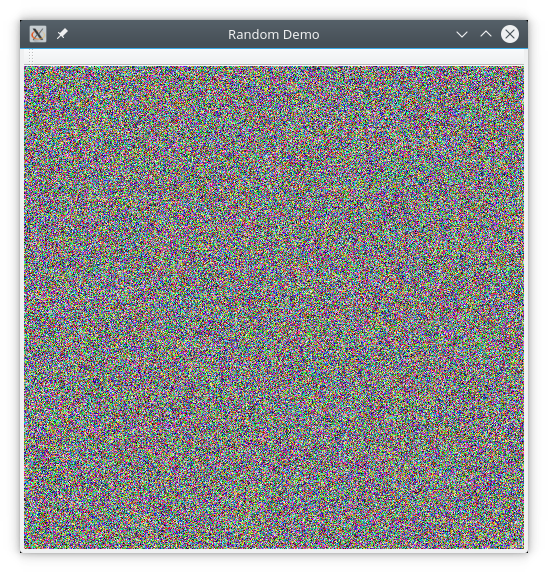 There is a lot of mathematics behind algorithms for generating sequences of pseudorandom numbers and testing them for randomness. A very simple test of the randomness of a generator is to visualize it graphically in some way. I wrote a simple demo(6) that fills a main window with random colored pixels every second.