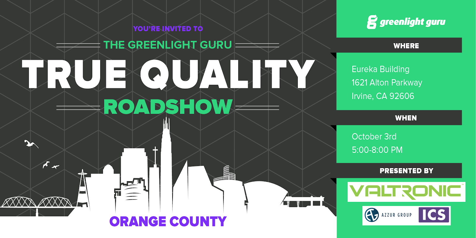 Join ICS, the team from Greenlight Guru, and Orange County's top medical device quality, regulatory, and engineering professionals at the True Quality Roadshow on October 3. ICS is sponsoring and on the panel at this complimentary evening event.
