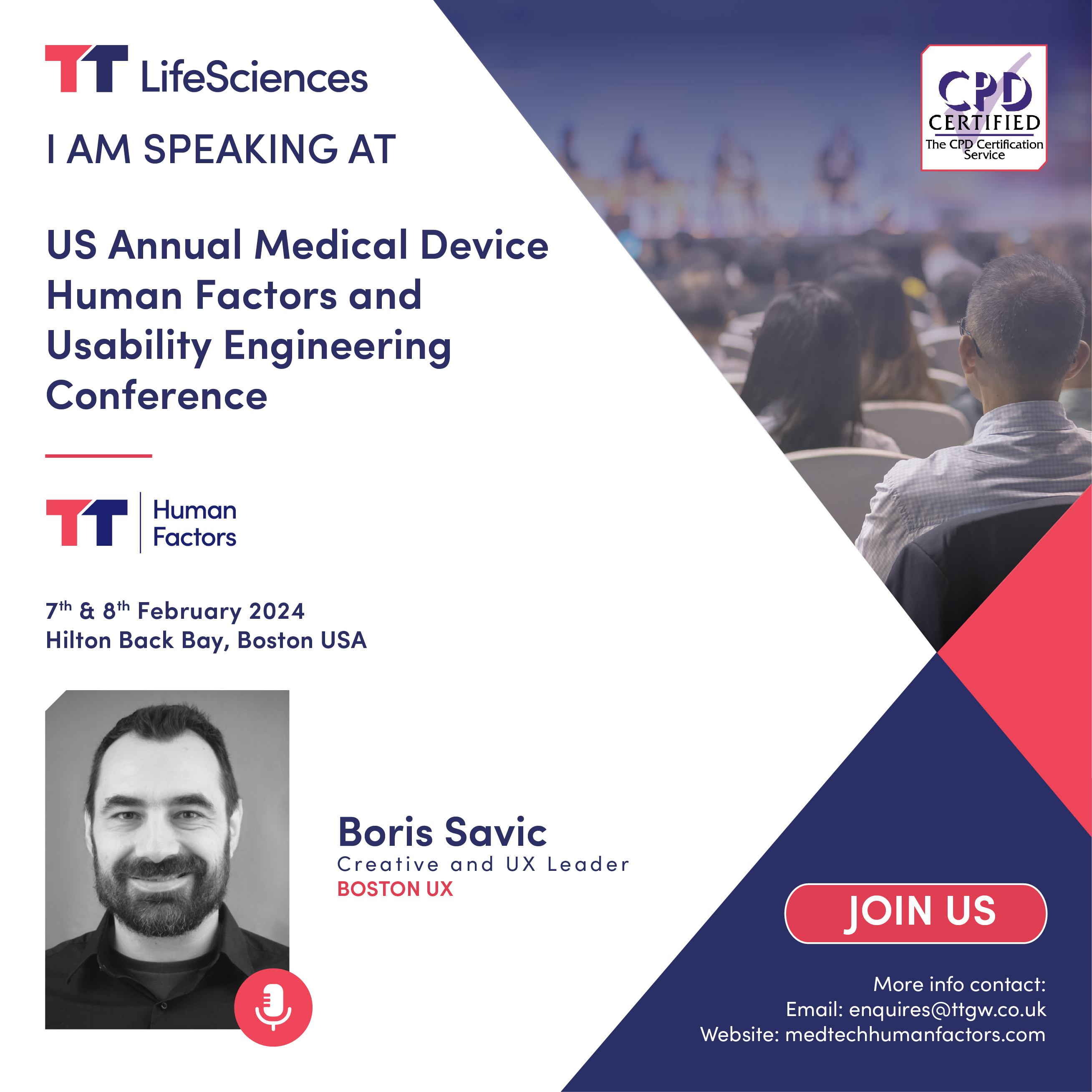 ICS and Boston UX are sponsoring and speaking at this annual conference, designed to bring together luminaries, professionals, and researchers from various disciplines to explore the critical role of human factors and usability engineering in ensuring medical devices’ safety, effectiveness, and user satisfaction. Prepare to be immersed in a realm where precision meets purpose. Our very own Director of UX and Product Design Boris Savic will be there to give a talk on Using Gamification for User Engagement in Medical and Life Sciences. Learn more.