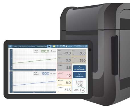 We designed large numbers and easy-to-read labels so that the user can accurately monitor the lung. We also made sure users could quickly access more detailed information if desired via convenient tabs at the top of the screen, and provided the ability to tap on an alert/error condition and quickly get to the precise information relevant to that condition.